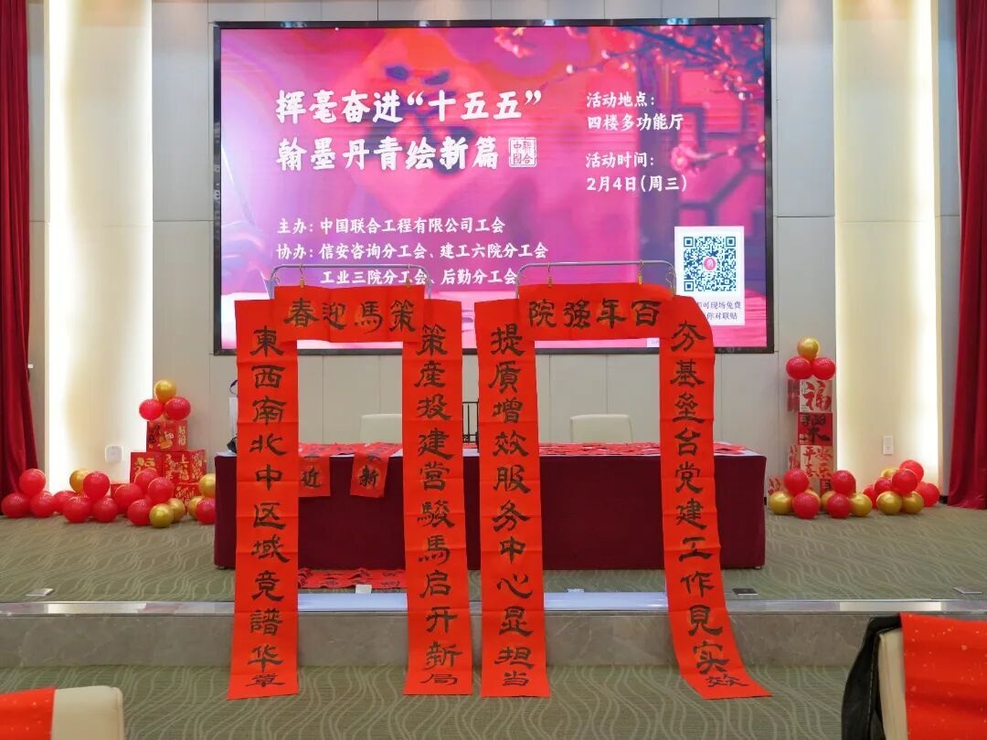 笔墨传情辞旧岁,春联送福启新篇。为营造喜庆祥和的马年新春氛围,凝聚全体员工奋进“十五五”的精神力量,扎实践行公司“家园”文化,2月4日立春之际,中国联合工程有限公司在杭州、重庆、西安三地同步开展“挥毫奋进‘十五五’·翰墨丹青绘新篇”主题迎新春写春联活动?;疃员誓男脑?,以春联贺新春,共绘公司发展新蓝图。